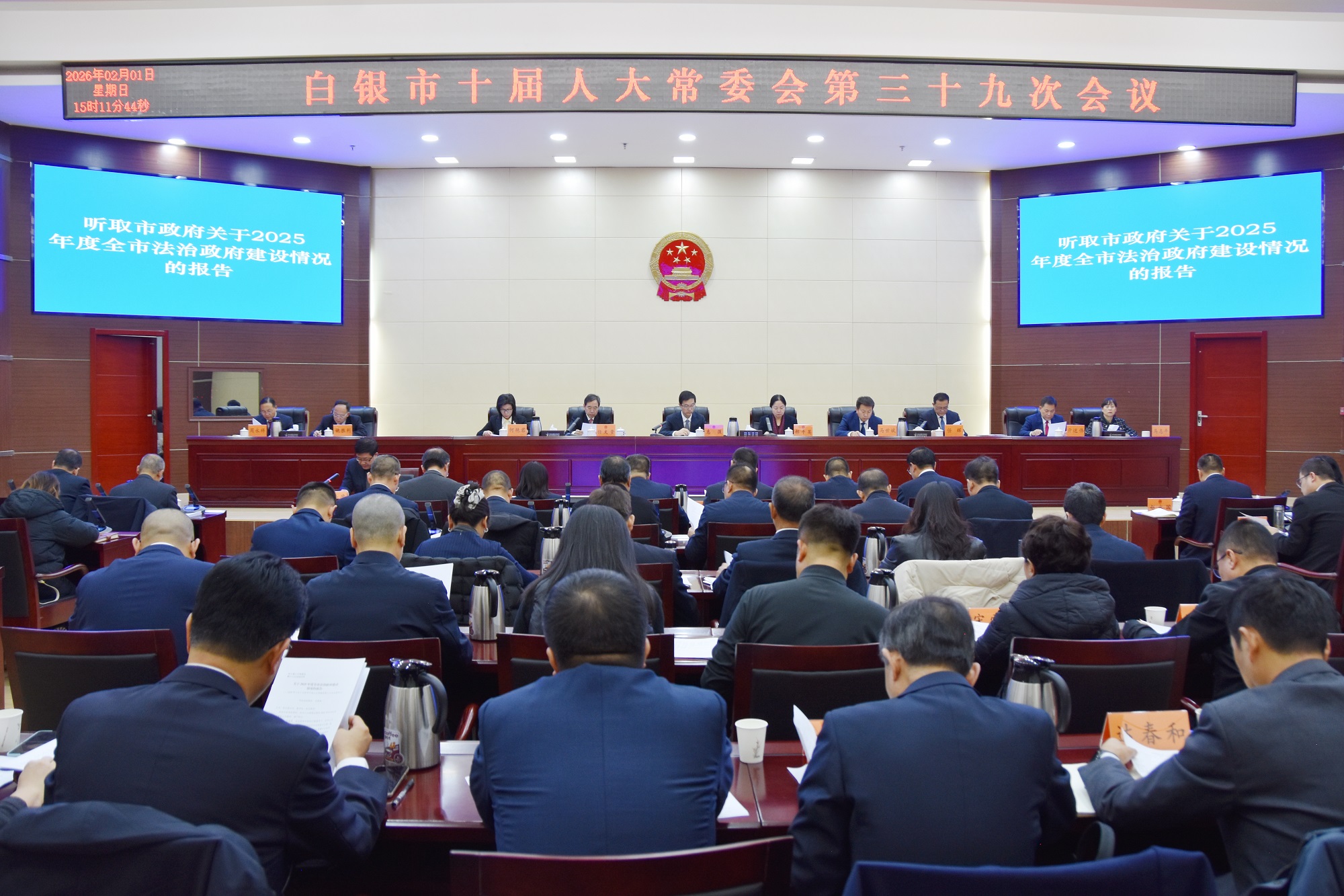 会议听取和审议了市政府关于2025年度全市法治政府建设情况的报告、关于白银市2026年民生实事候选项目方案的报告,听取和审议了市人大常委会代表资格审查委员会关于个别代表的代表资格的报告,听取了市人大常委会关于市十届人大五次会议筹备情况的报告,审议了有关报告和文件材料。