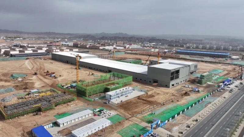 甘肃银高储能科技有限公司8GWh磷酸铁锂电池项目现场,多台大型机械设备工作繁忙、各项工作接续推进。