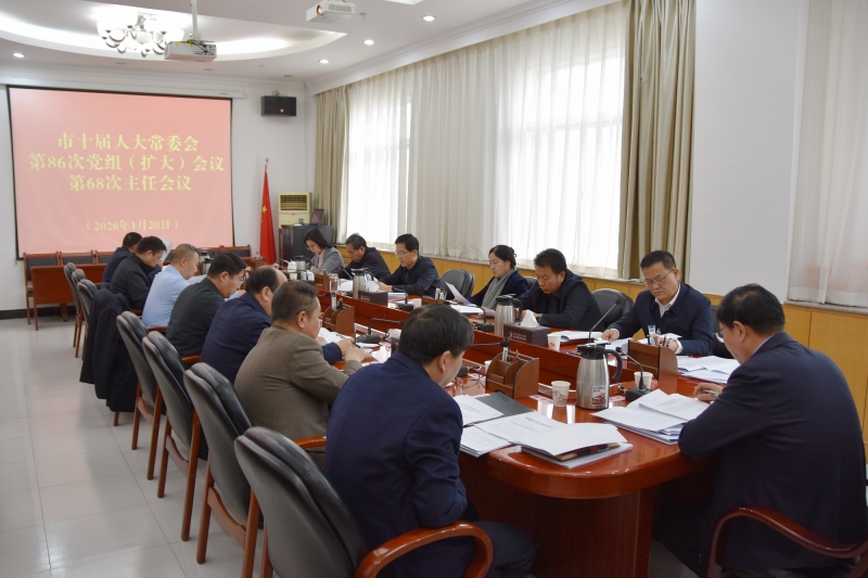 1月20日下午,市十届人大常委会召开第86次党组(扩大)会议、第68次主任会议和第55次党组理论学习中心组(扩大)会议。市人大常委会党组书记、主任惠强主持并讲话。